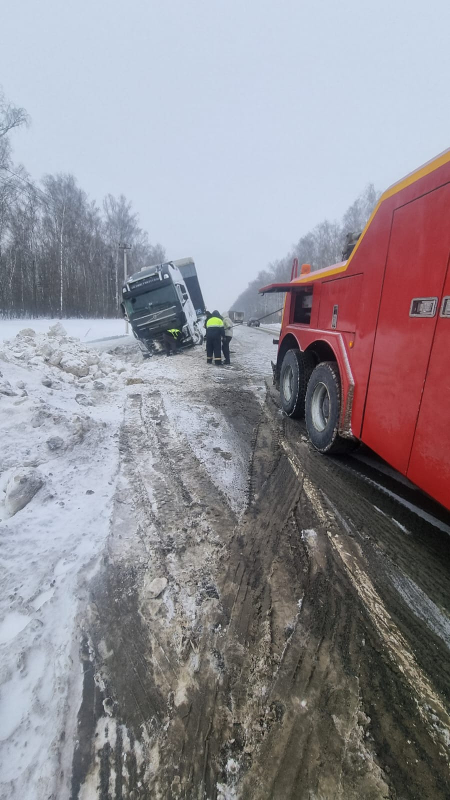 ДТП двух фур из-за гололеда: как мы поднимали груженый рефрижератор без единой царапины