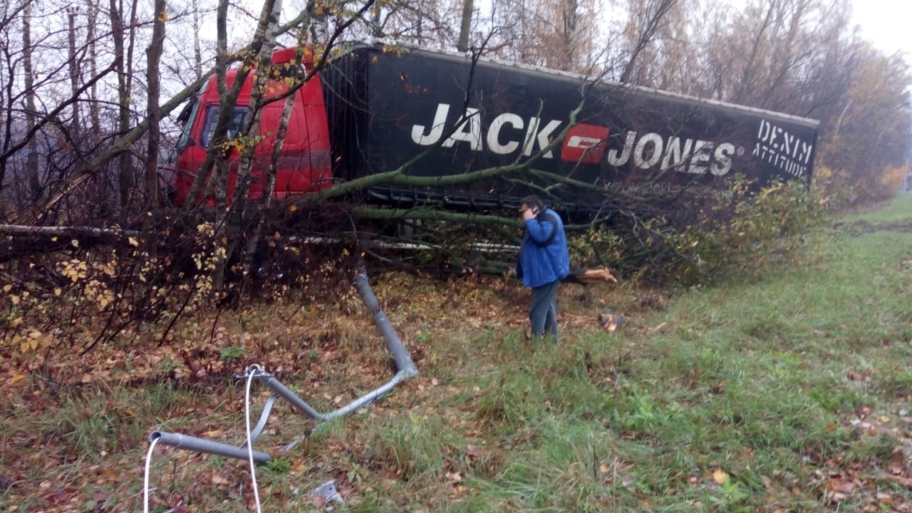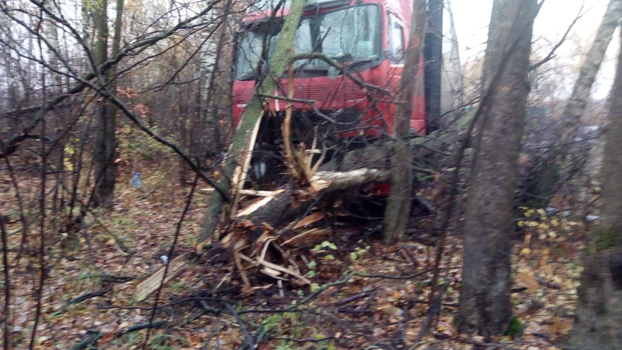 Один из недавних вызовов заключался в помощи водителю большегрузной машины. Водитель не справился с управлением на Каширском шоссе, и машина полностью ушла в лес. Большегрузная машина снесла на своем пути столб и несколько деревьев.