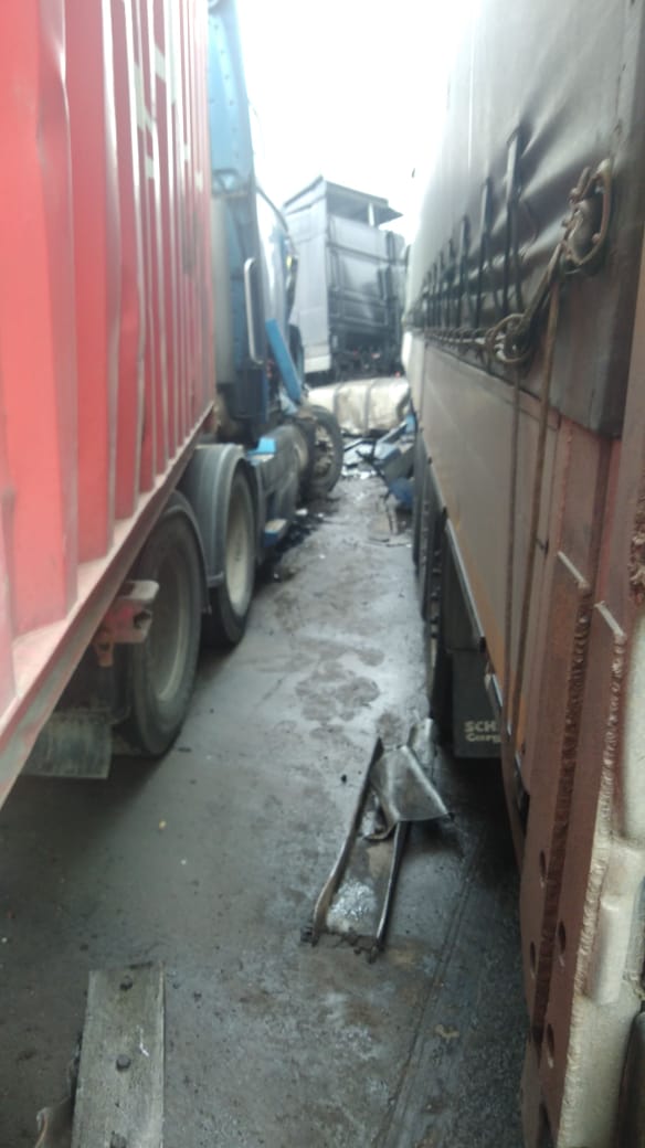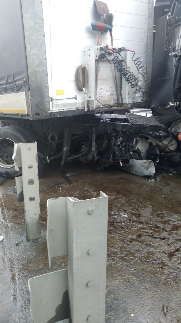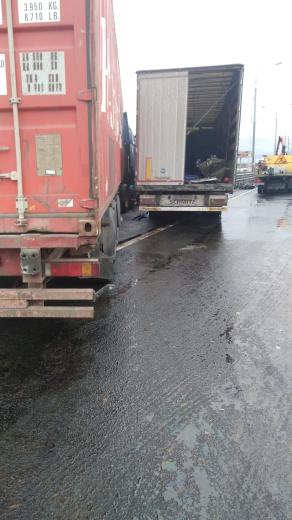 Наши сотрудники оперативно приехали на место происшествия. После тщательного анализа сложившейся ситуации было принято решение об спиливание отбойников и эвакуации грузовых машин. Однако пришлось делать это поэтапно для каждой машины отдельно.