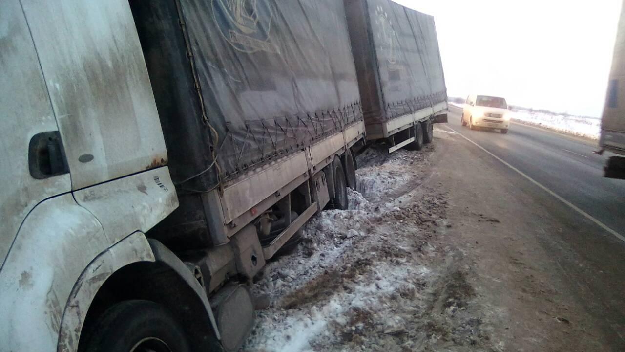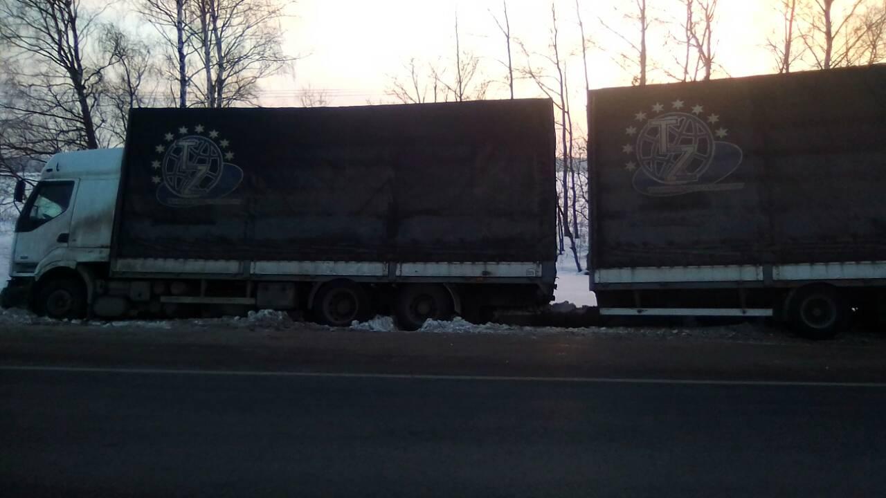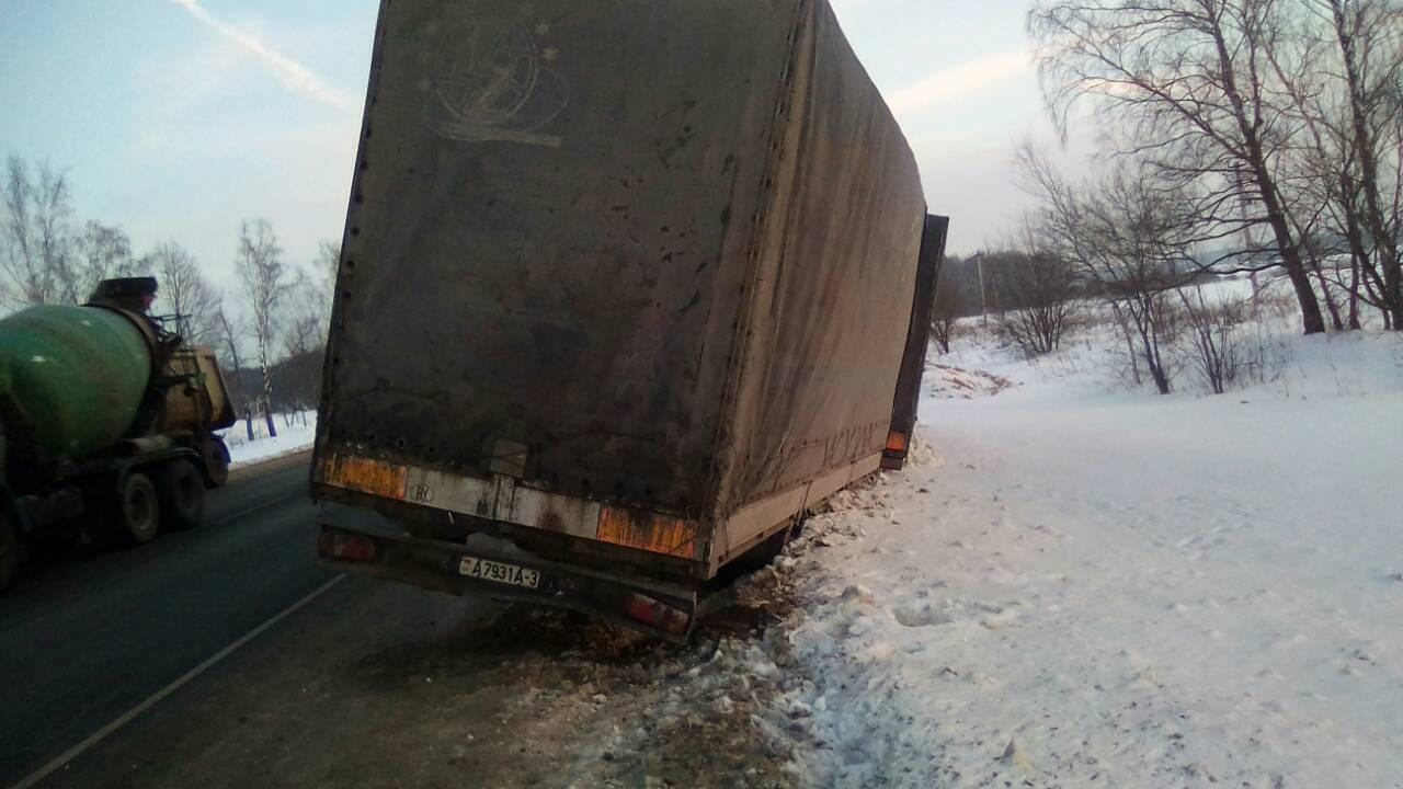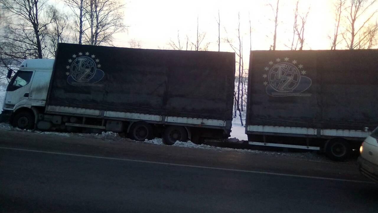 Груженое иностранное транспортное средство было на грани опрокидывания. Аварийная ситуация произошла на дороге а107, недалеко от Подольска. К эвакуации привлекалась патрульная служба ДПС.