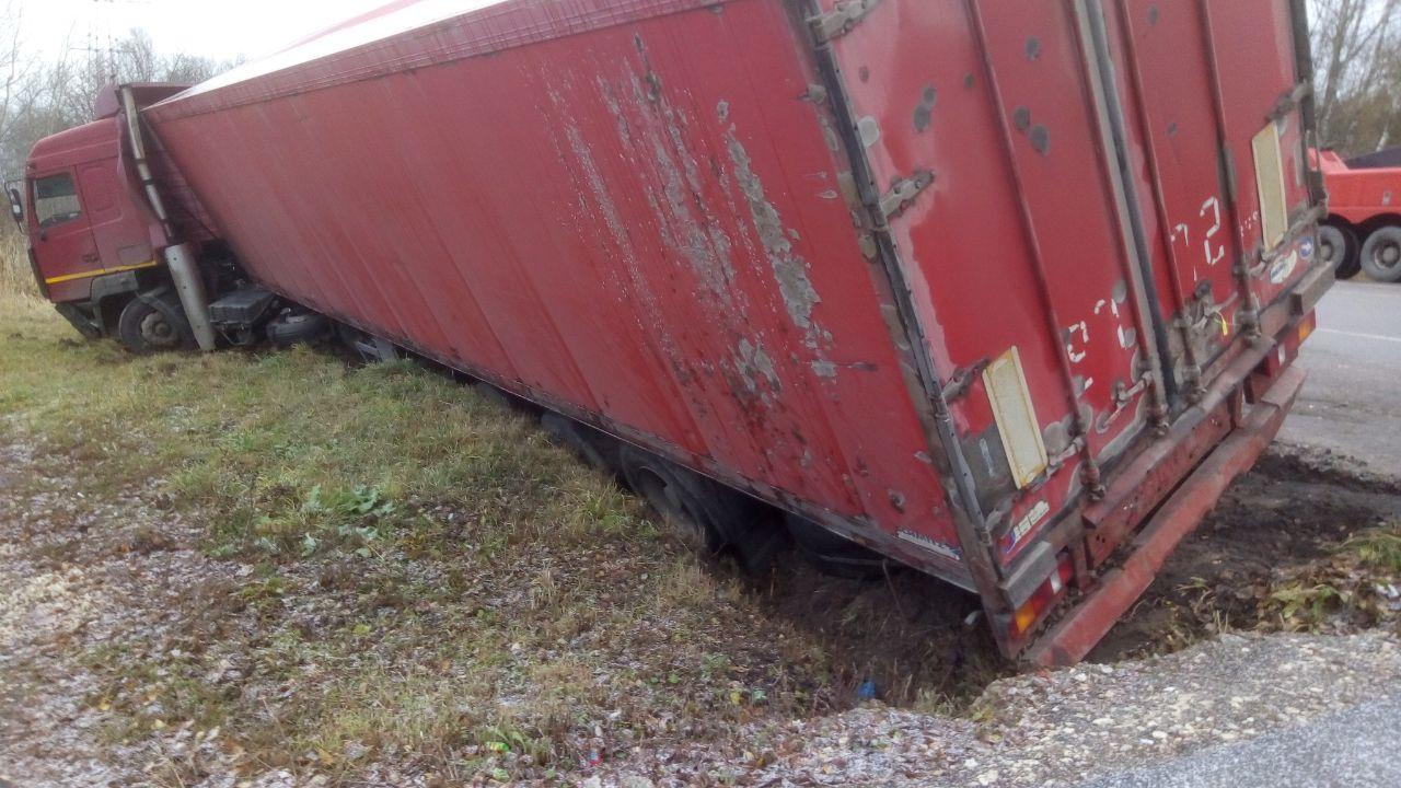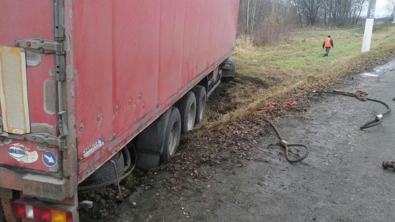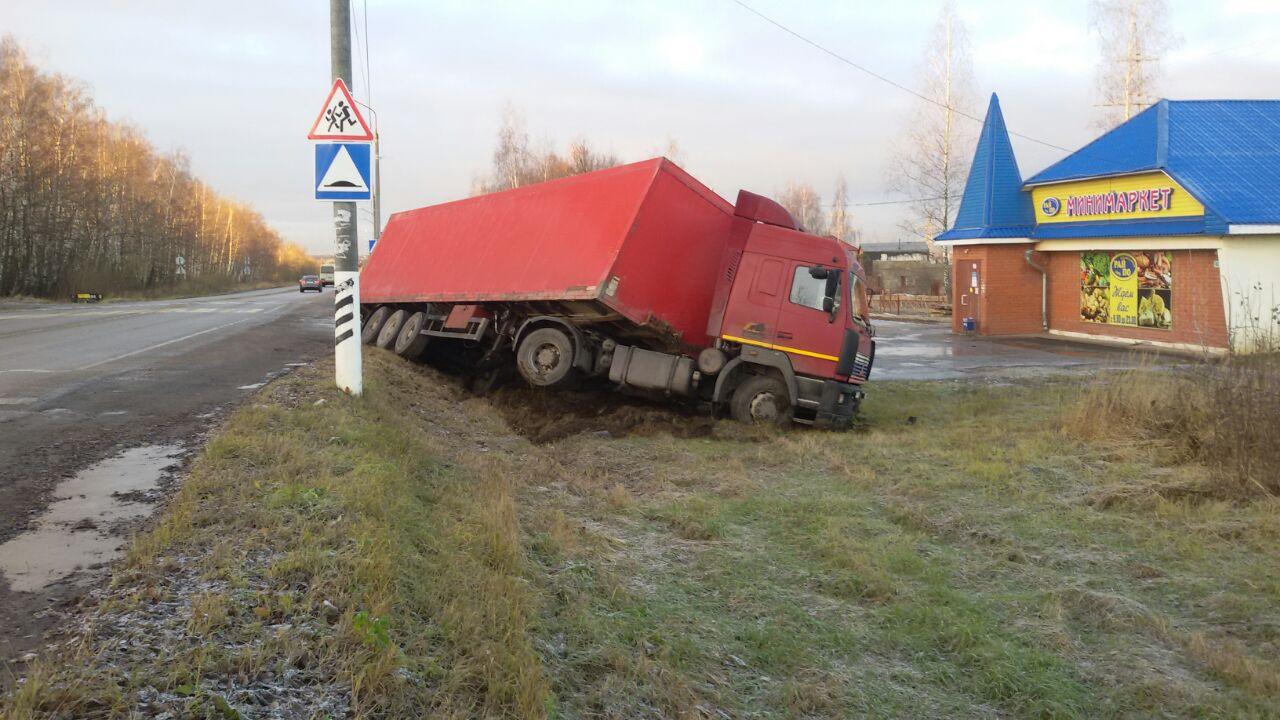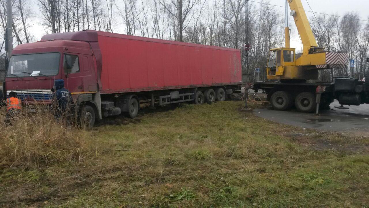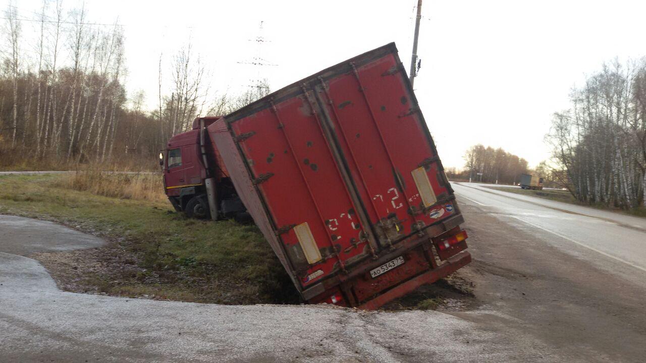В деревне Лиды Каширского района произошла аварийная ситуация. Грузовое транспортное средство слетело с автомобильной дороги. Грузовик был на грани опрокидывания. Водитель обратился в нашу компанию за оперативной помощью.