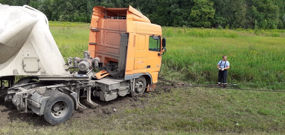 Эвакуацией транспортного средства занималась команда «Буксир-112». Наши специалисты справились с этой задачей за 2 часа. Из-за сильных повреждений грузовик приходилось вытаскивать частями: сначала кабину, затем прицеп. Транспортное средство эвакуировано в сервисный центр для ремонта.