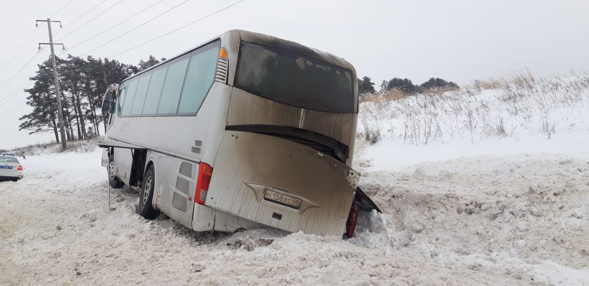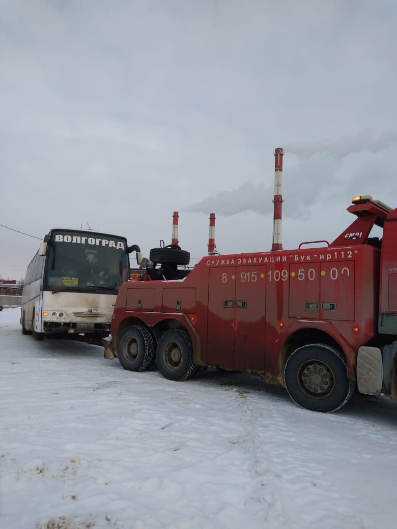 К нам обратился водитель рейсового автобуса двигающегося по направлению Волгоград—Москва. Не справившись на повороте с управлением, его занесло, и машина оказался в кювете. Буксировка машины осуществлена за переднюю балку до места ремонта. Пассажиров эвакуировали на другом автобусе.