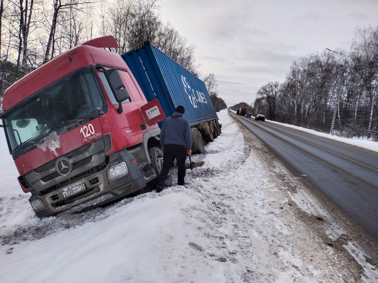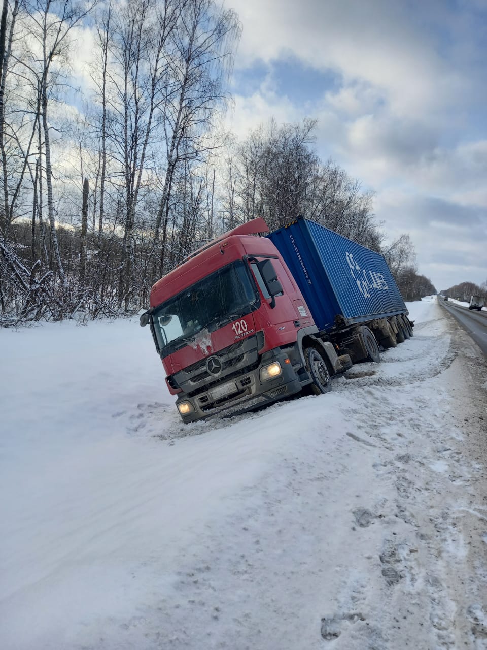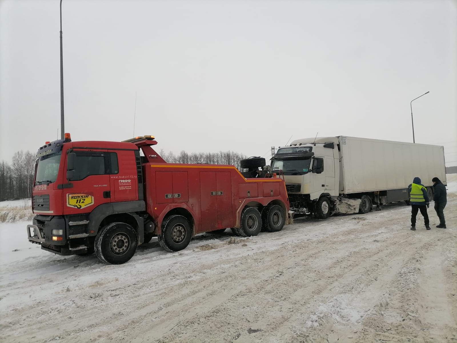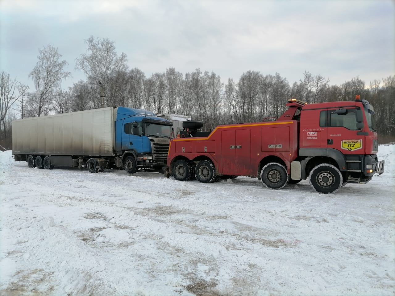 Два грузовика попали в неполадки, но благодаря нашему профессионализму и оперативности, мы смогли помочь им вернуться на дорогу в кратчайшие сроки. Один из грузовиков даже завалился на бок, но мы справились с этой сложной ситуацией без повреждений для транспортного средства.