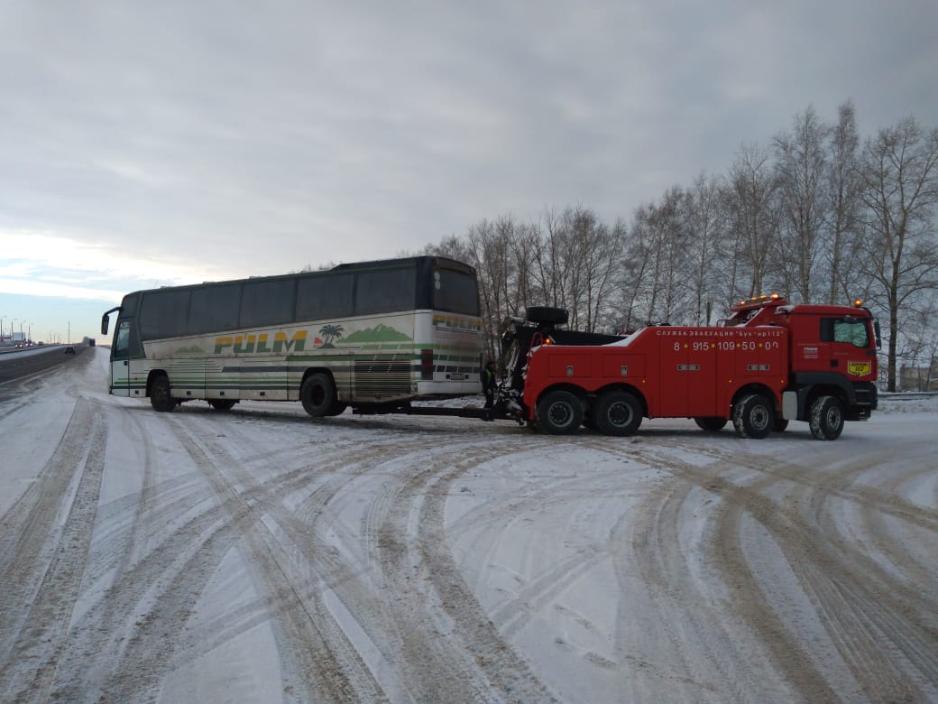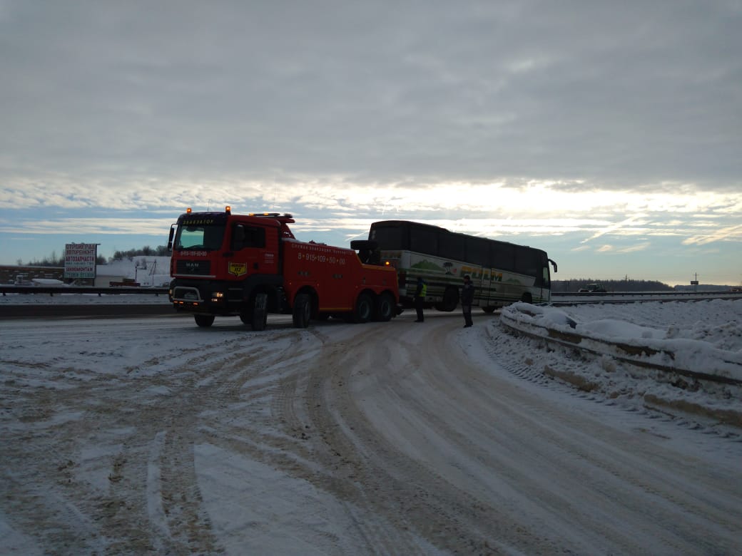 У автобуса Mercedes сломался чулок заднего моста. Была проведена сложнейшая эвакуация: за заднюю ось в г. Озеры.