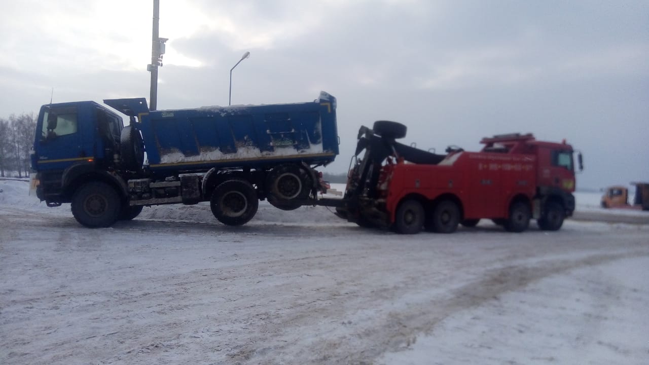 У красного МАЗ на дороге а107 перестал работать двигатель. Транспортное средство отбуксировали в сервисный центр МАЗ г. Беседы.