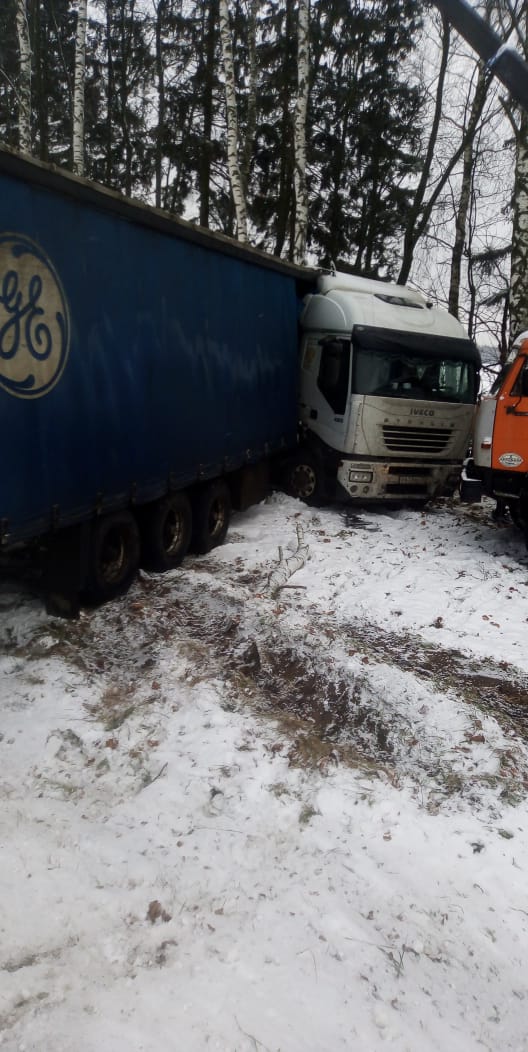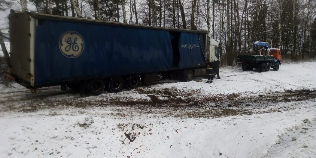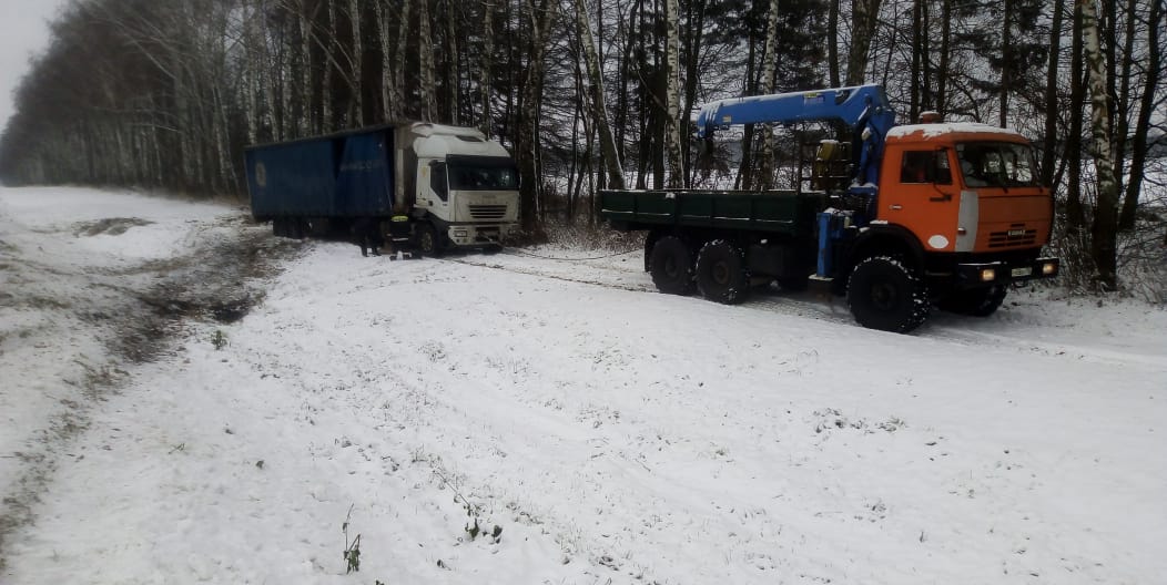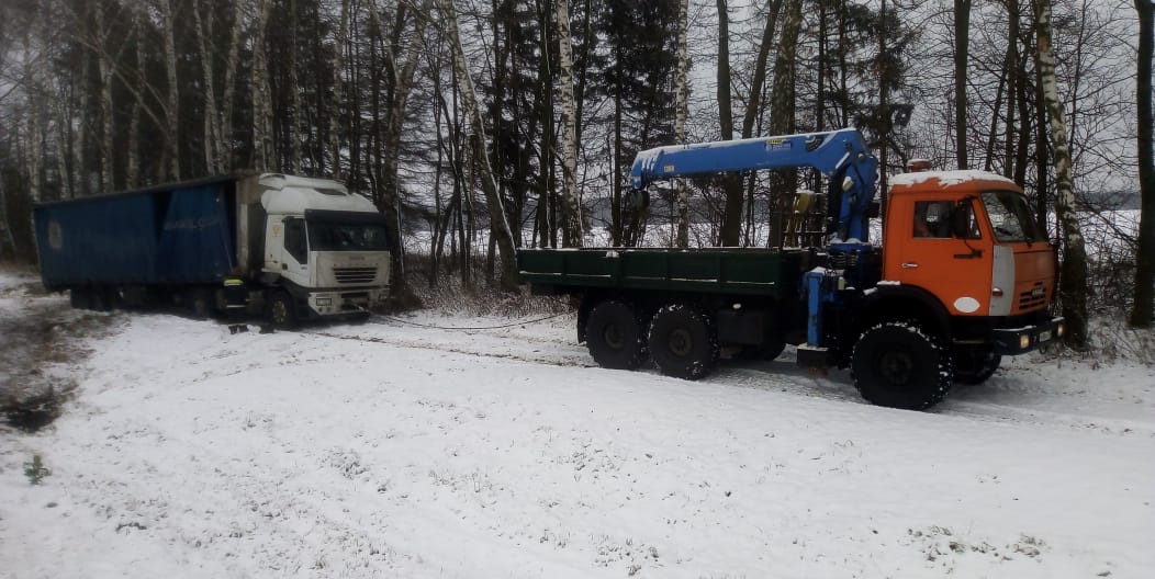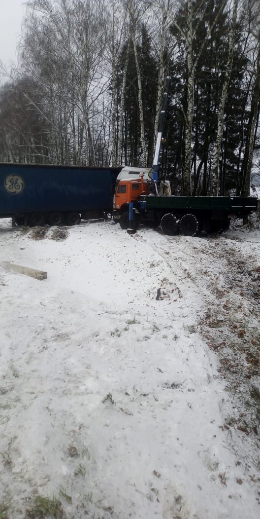 Речь идет о дорожно-транспортном происшествии, в котором оказался водитель груженного КАМАЗа. На скользкой дороге он не справился с управлением и выехал на обочину. Хорошо, что машина не перевернулась и водитель не пострадал. Однако транспортное средство сложилось в позицию “ножницы” и выбраться из этой ситуации водитель не смог самостоятельно. Он обратился в нашу спасательную службу.