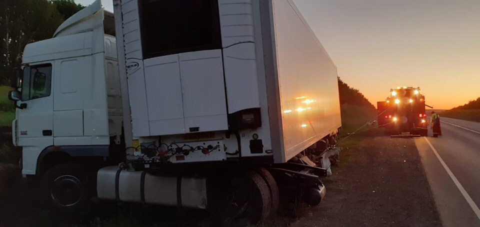 Грузовое транспортное средство получило серьезные повреждения, которые препятствовали самостоятельному движению. Фура была отбуксирована в сервисный центр в г. Гжель.