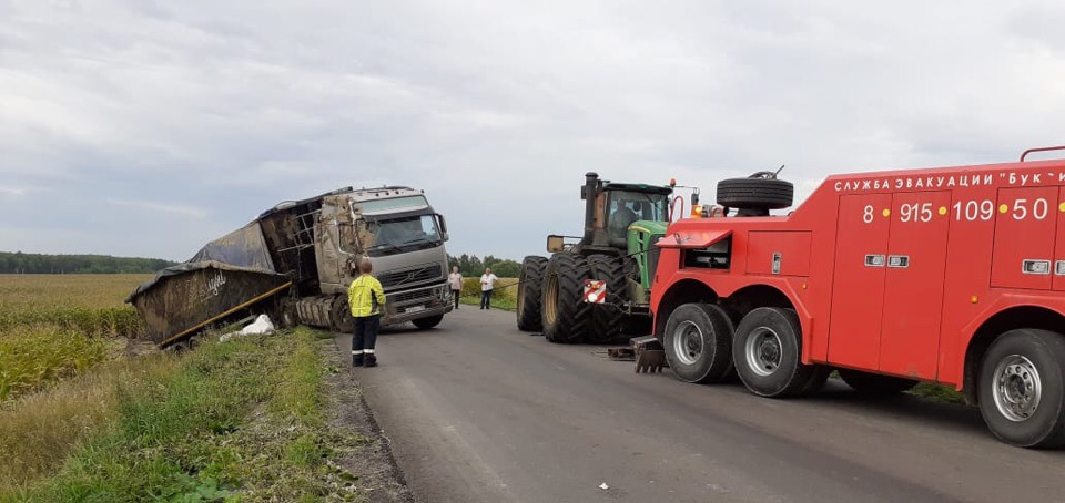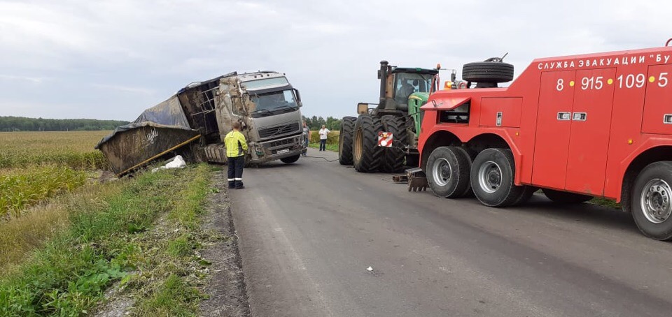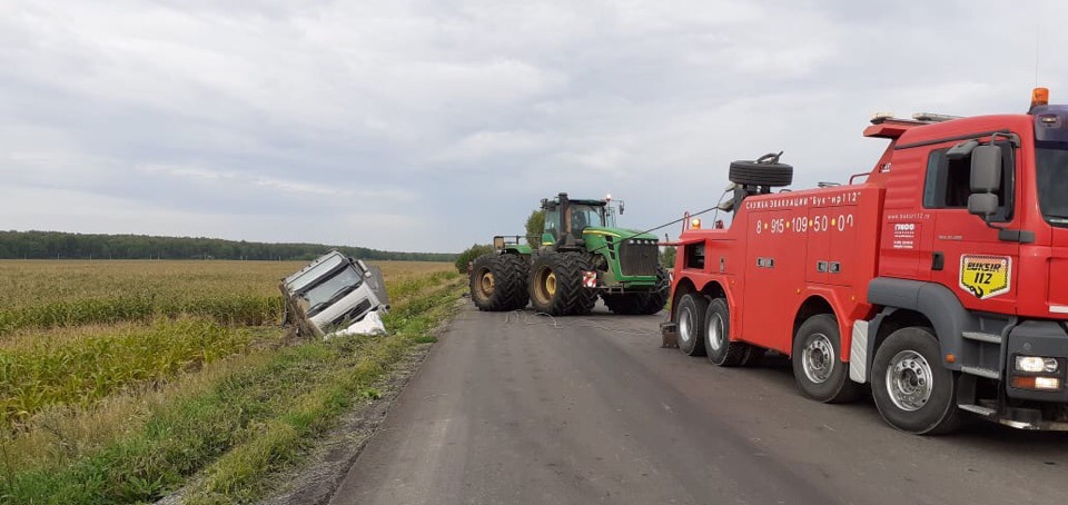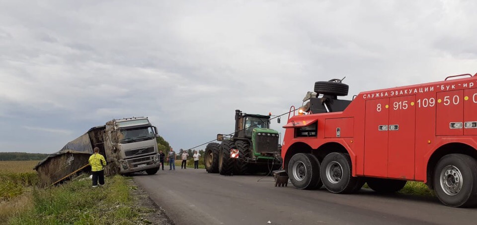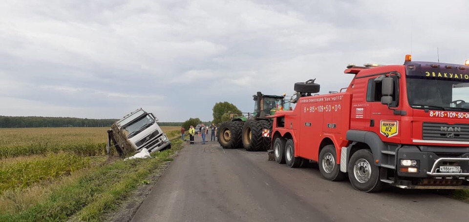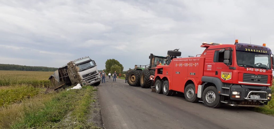 «Буксир-112» быстро добрались до места ДТП. Но из-за большого веса транспортного средства, наша команда не смогла справиться самостоятельно. Нам пришлось прибегнуть к помощи местной сельской техники. Водитель трактора с радостью откликнулся на нашу просьбу. После эвакуации водитель продолжил путь. ТС получило минимальные повреждения.