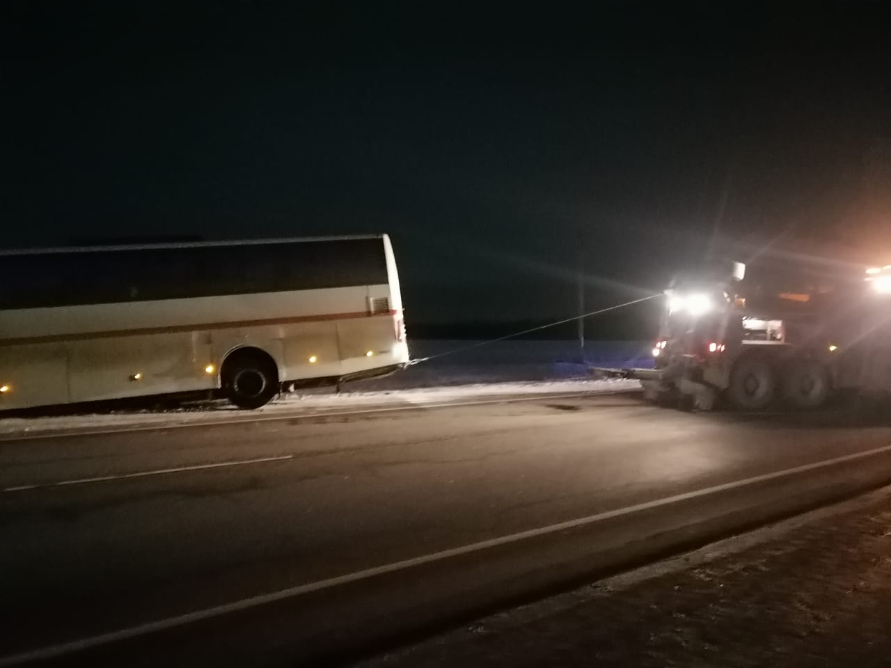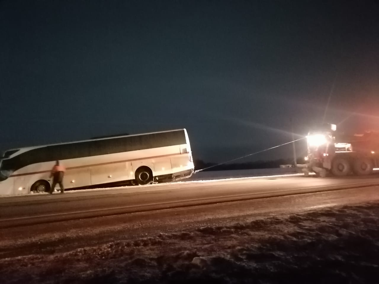 Благодаря быстрой реакции и слаженной работе, мы смогли оперативно вытянуть автобус с помощью лебедки без повреждений. Водители и пассажиры остались целы и невредимы, что для нас является главным приоритетом в таких ситуациях.