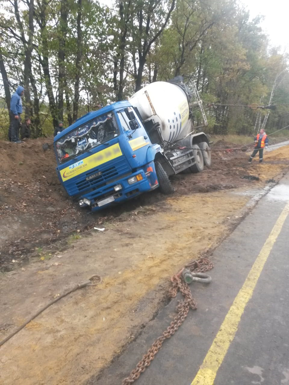 В нашу компанию позвонил водитель грузового транспорта, который попал в дорожно-транспортное происшествие. Из–за невнимательности водителя, бетономешалка съехала с трассы и завалилась набок. Наши специалисты оперативно приехали на место происшествия, осмотрели транспортное средство на наличие поломок. Делается это с целью исключить возможность полной поломки автомобиля. После того, как внешний осмотр не выявил никаких значимых поломок, наши специалисты приступили к подъему транспортного средства на колеса. Вся процедура заняла около 4 часов. Сработали грамотно и надежно.